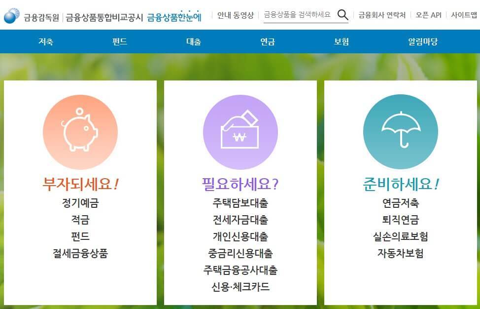 금융감독원 금융상품 통합비교공시에서 돈 모으는 상품, 돈 빌리는 상품을 목록별로 검색할 수 있었다