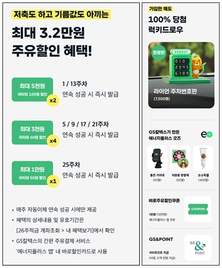 - 5, 7, 17, 21 주차 성공 시 리터당 60원 할인권 발급 (총 4회)
