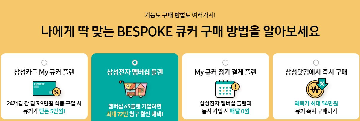 삼성카드가 없다면 삼성닷컴에서 진행하는 다양한 큐커 구매방법 이벤트도 있으니