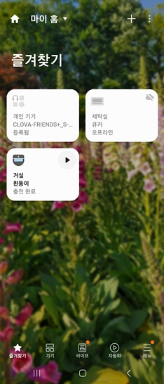 스마트싱스 첫 화면에 우리 집 흰둥이 충전을 완료했다고 알려준다