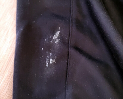 그래도 결국 실리콘 얼룩은 지웠다. 신축성이 있는 옷이라 옆으로 늘려보면 사이사이 흰 자국들이 보이지만 처음 묻었을 때보단 훨씬 나아졌다. 그리고 옷감 손상도 없었다