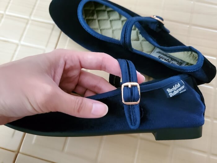 메리제인의 중요한 발등 스트랩. 한번 더 바인딩되어있어서 약하진 않겠고 금색 버클이 포인트.